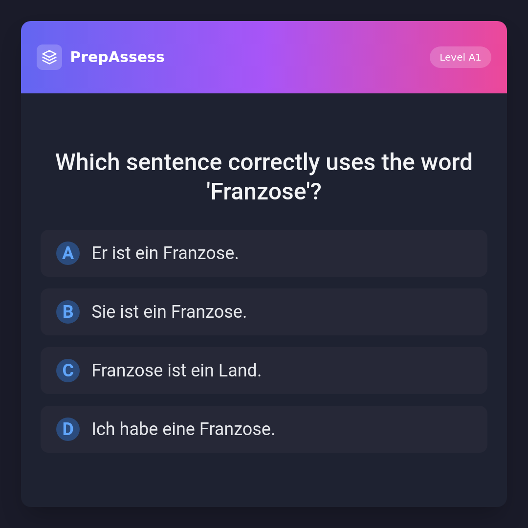 Which sentence correctly uses the word 'Franzose'?