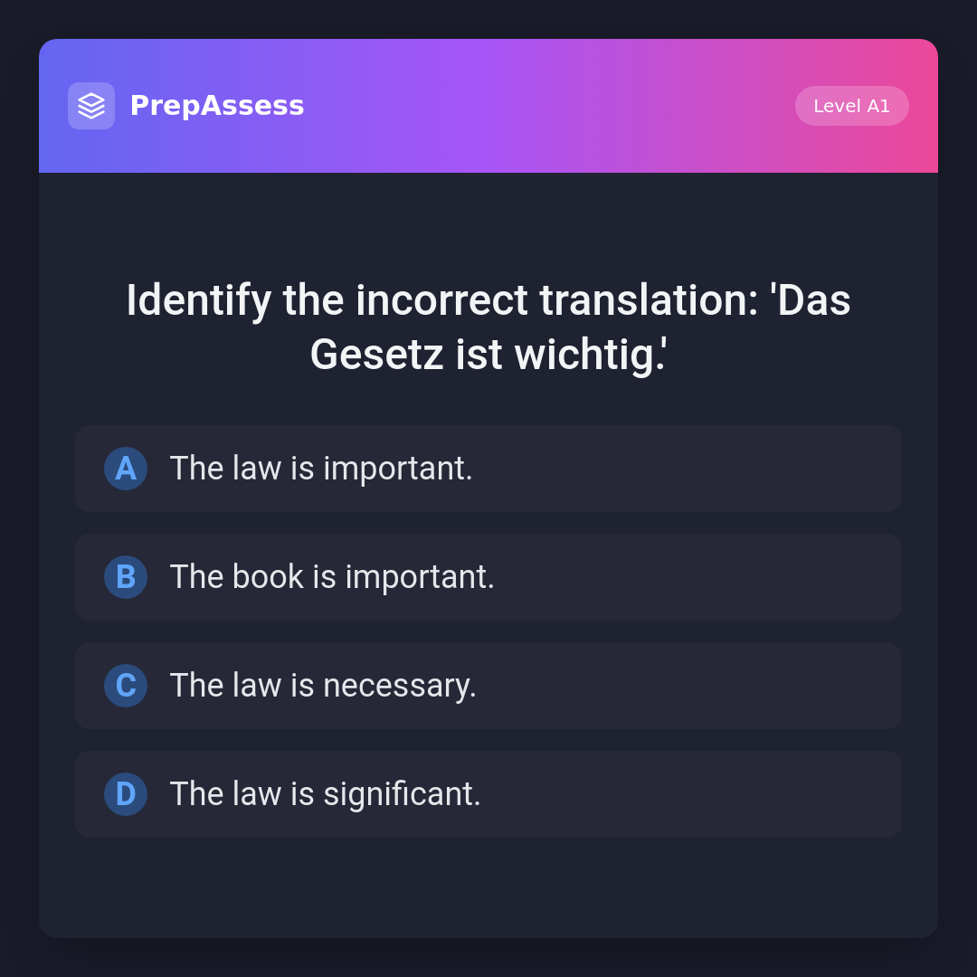 Identify the incorrect translation: 'Das Gesetz ist wichtig.'