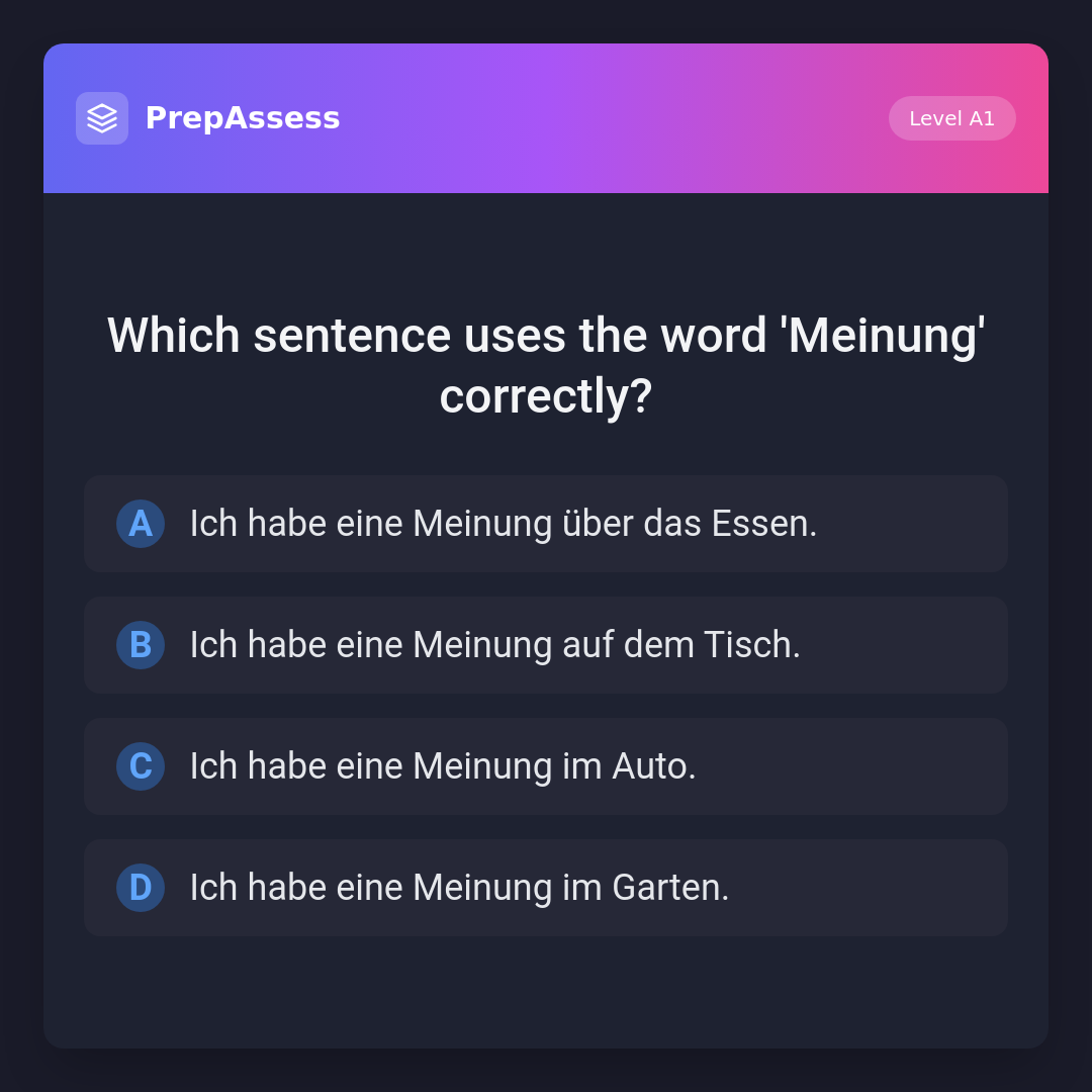 Which sentence uses the word 'Meinung' correctly?