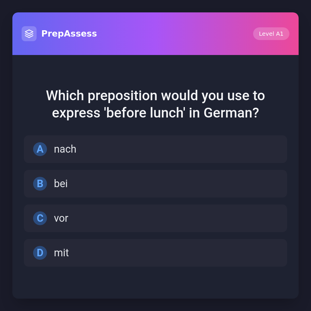 Which preposition would you use to express 'before lunch' in German?