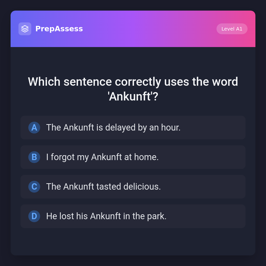 Which sentence correctly uses the word 'Ankunft'?