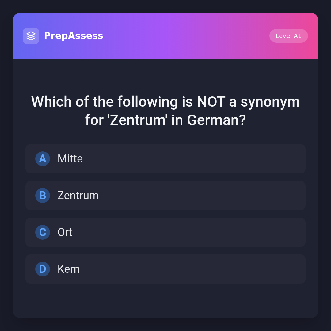 Which of the following is NOT a synonym for 'Zentrum' in German?