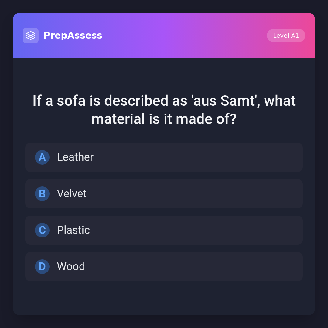 If a sofa is described as 'aus Samt', what material is it made of?