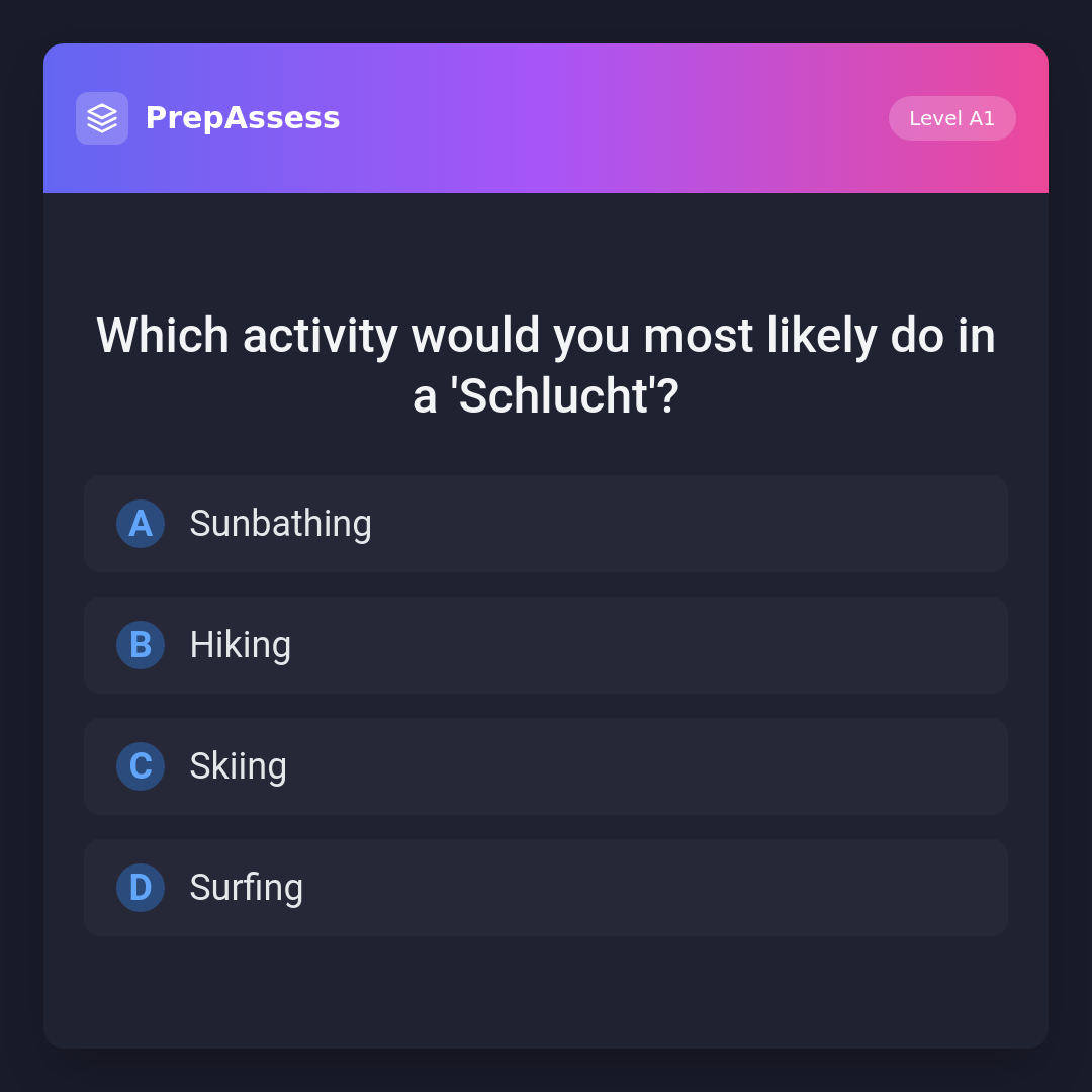 Which activity would you most likely do in a 'Schlucht'?