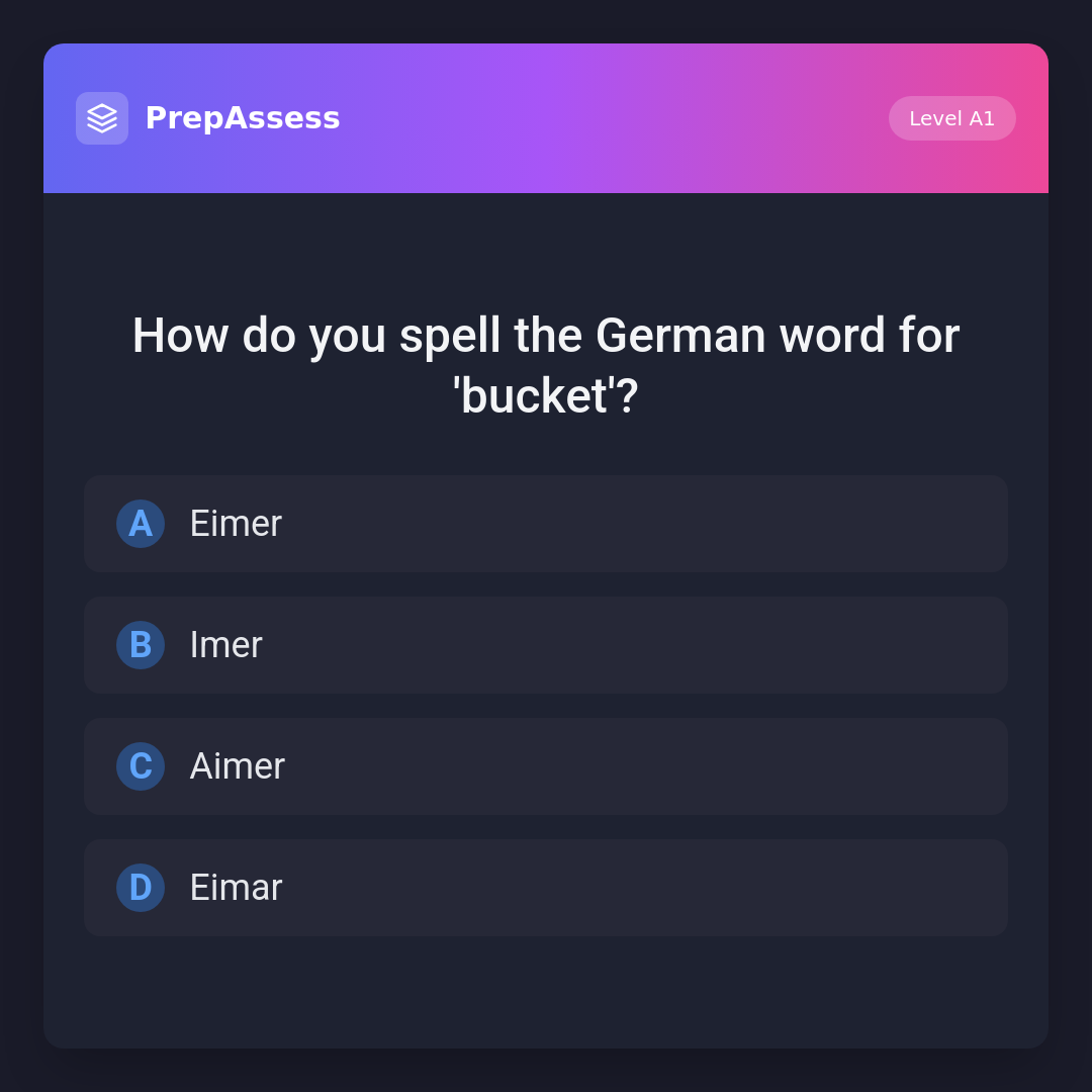 How do you spell the German word for 'bucket'?
