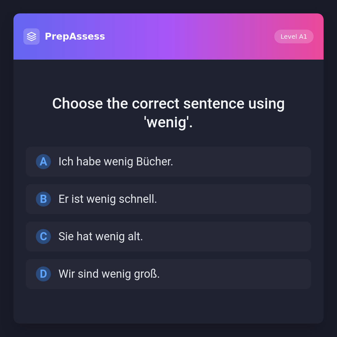 Choose the correct sentence using 'wenig'.