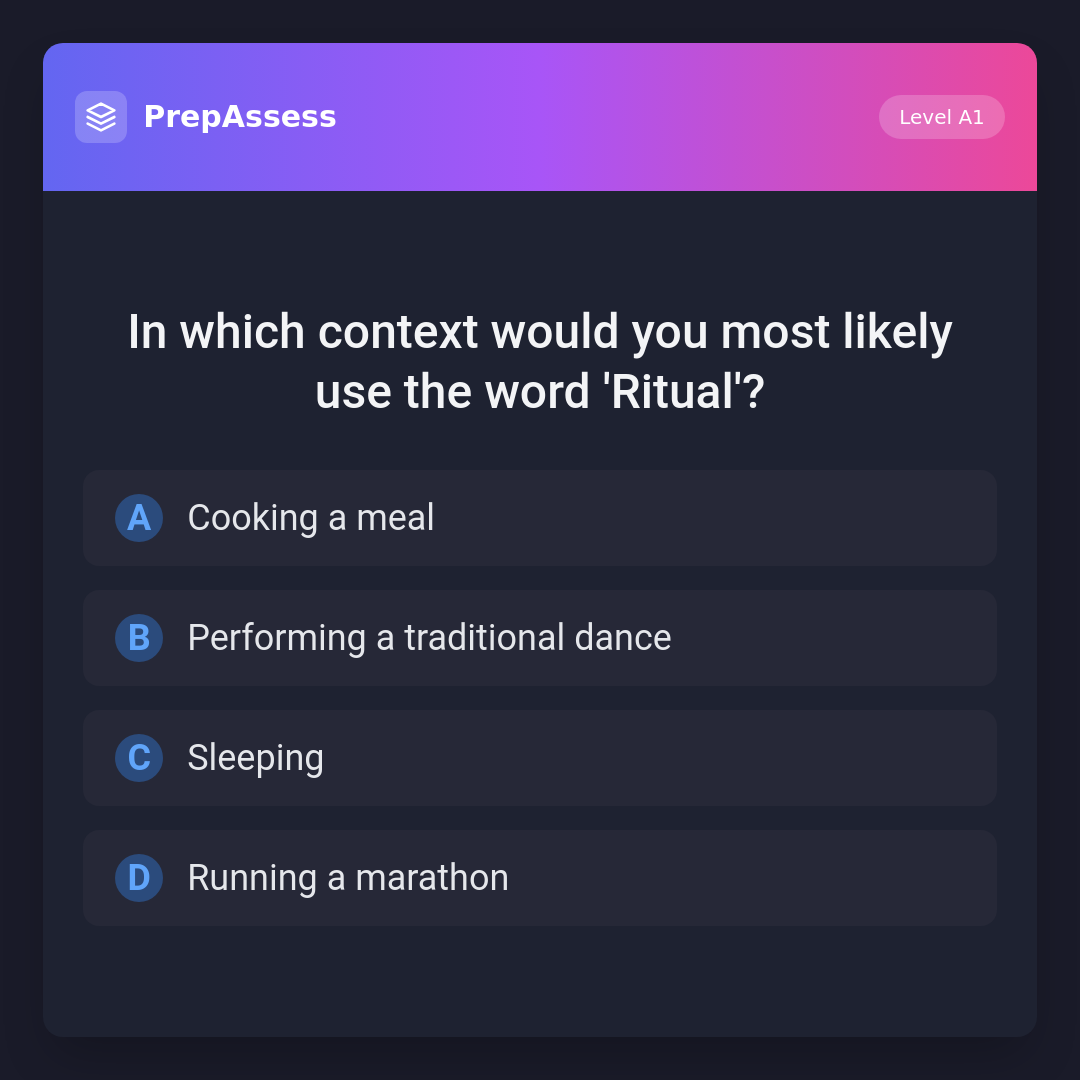 In which context would you most likely use the word 'Ritual'?
