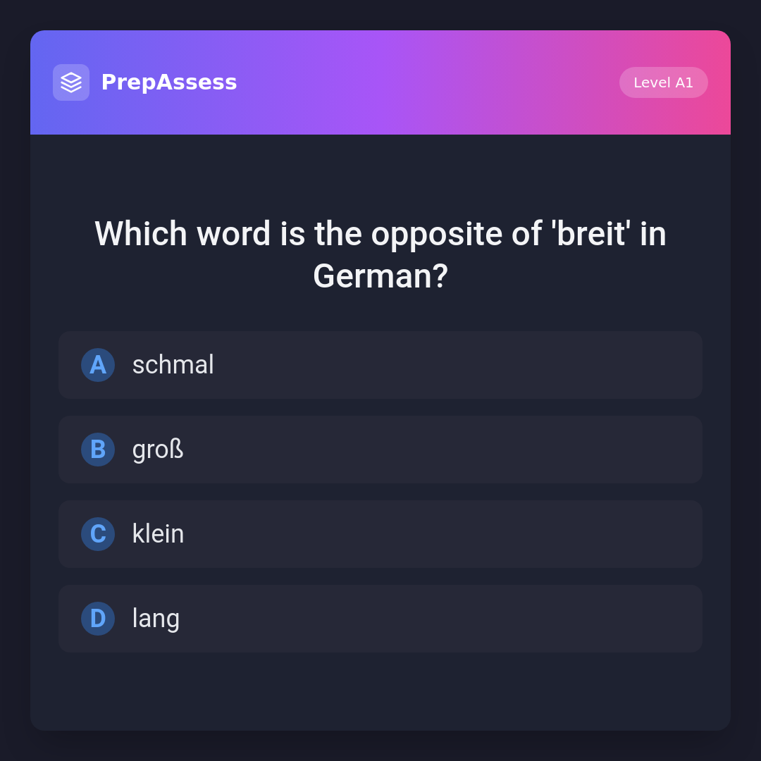 Which word is the opposite of 'breit' in German?