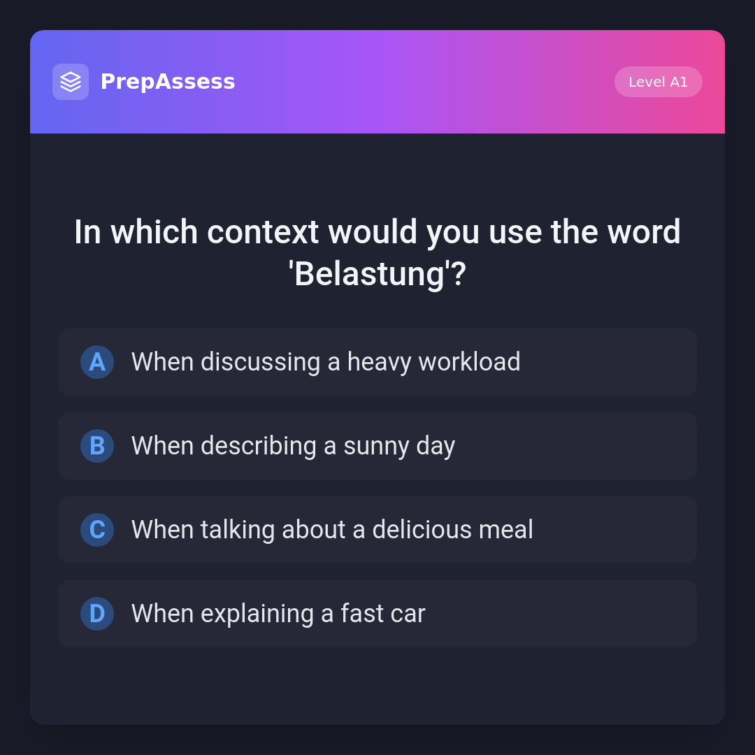 In which context would you use the word 'Belastung'?