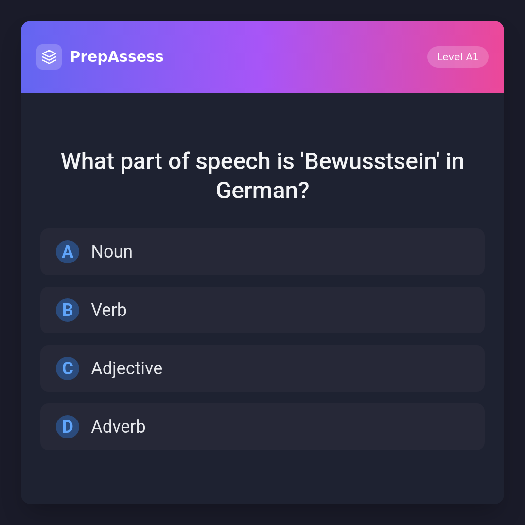 What part of speech is 'Bewusstsein' in German?