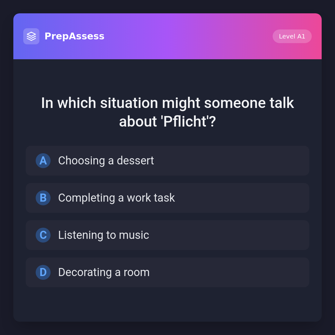 In which situation might someone talk about 'Pflicht'?