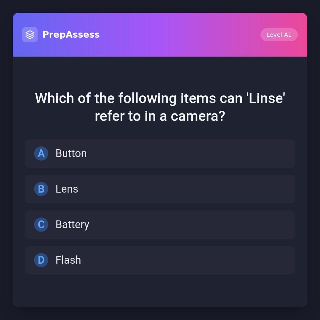 Which of the following items can 'Linse' refer to in a camera?