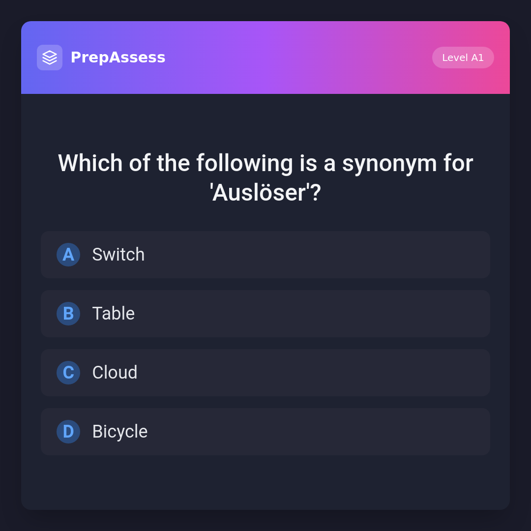 Which of the following is a synonym for 'Auslöser'?