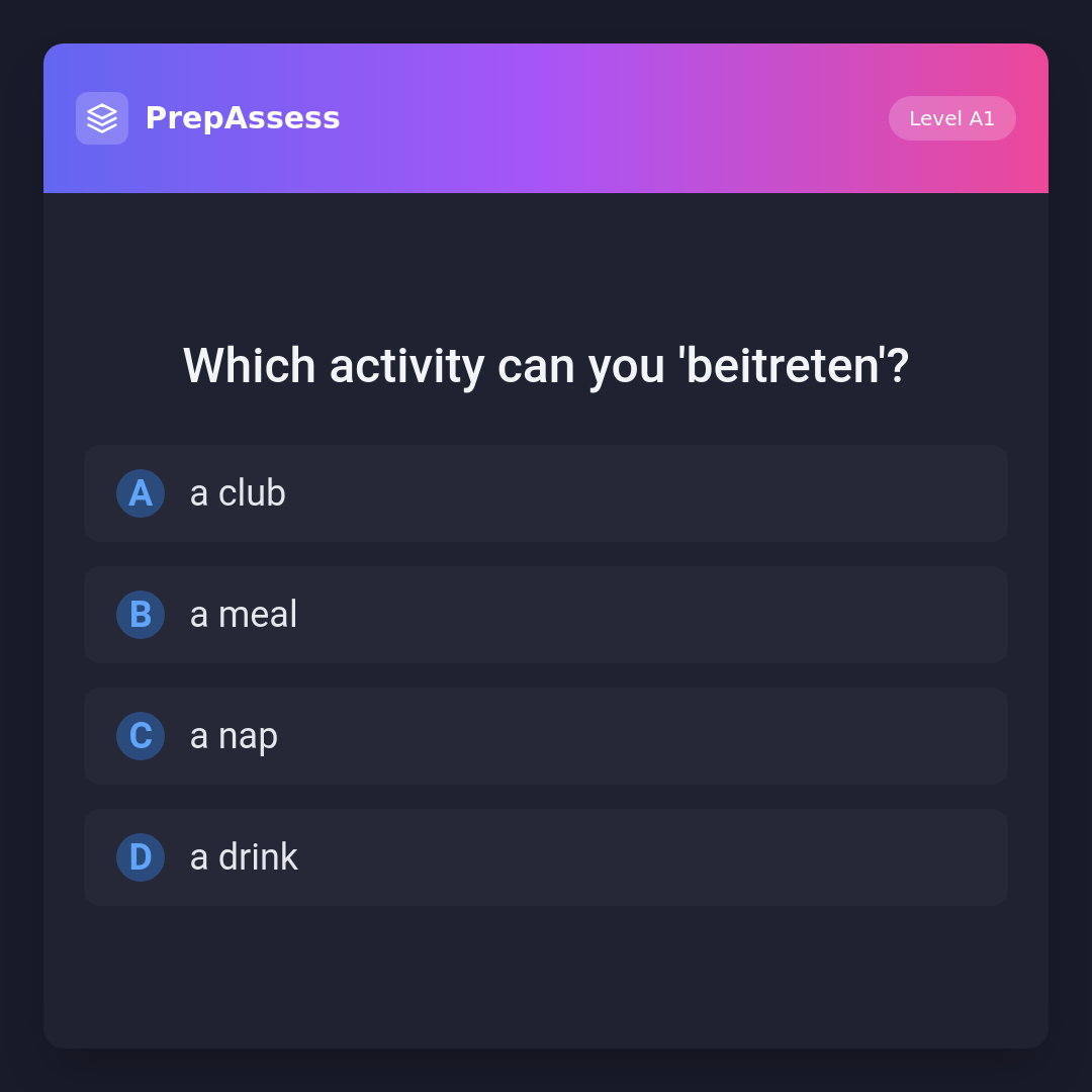 You can 'beitreten' (join) a club. The other activities don't make sense with 'beitreten': you don't join a meal, a nap, or a drink.