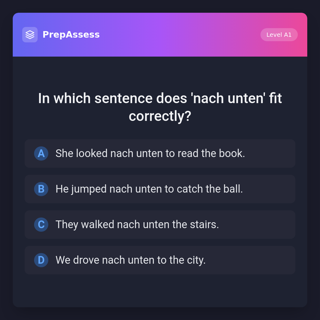 In which sentence does 'nach unten' fit correctly?