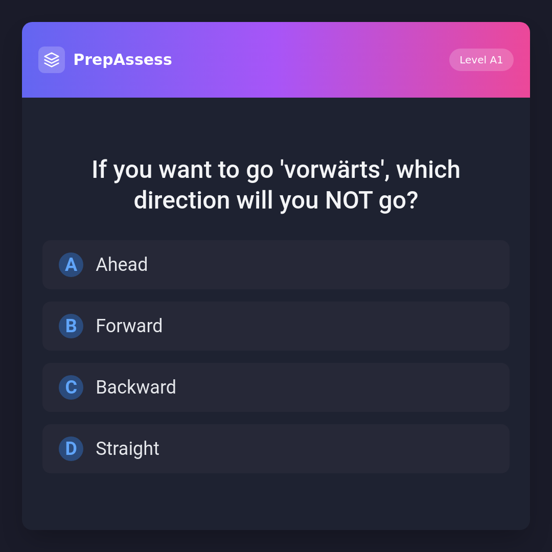 If you want to go 'vorwärts', which direction will you NOT go?