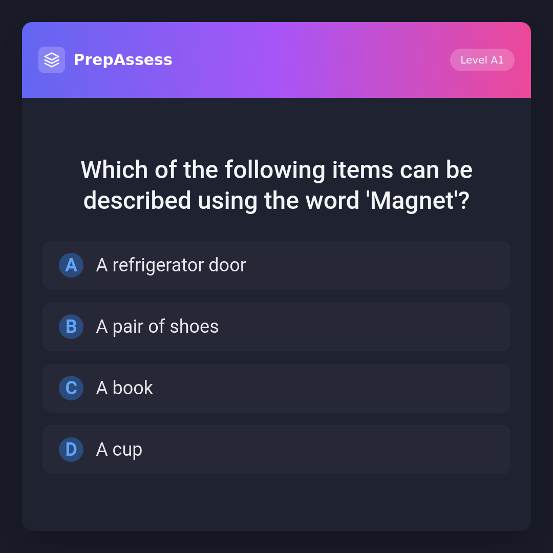 Which of the following items can be described using the word 'Magnet'?