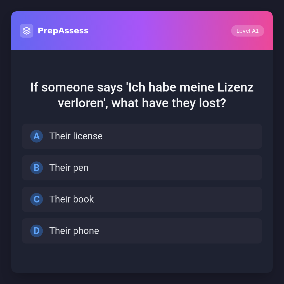 If someone says 'Ich habe meine Lizenz verloren', what have they lost?