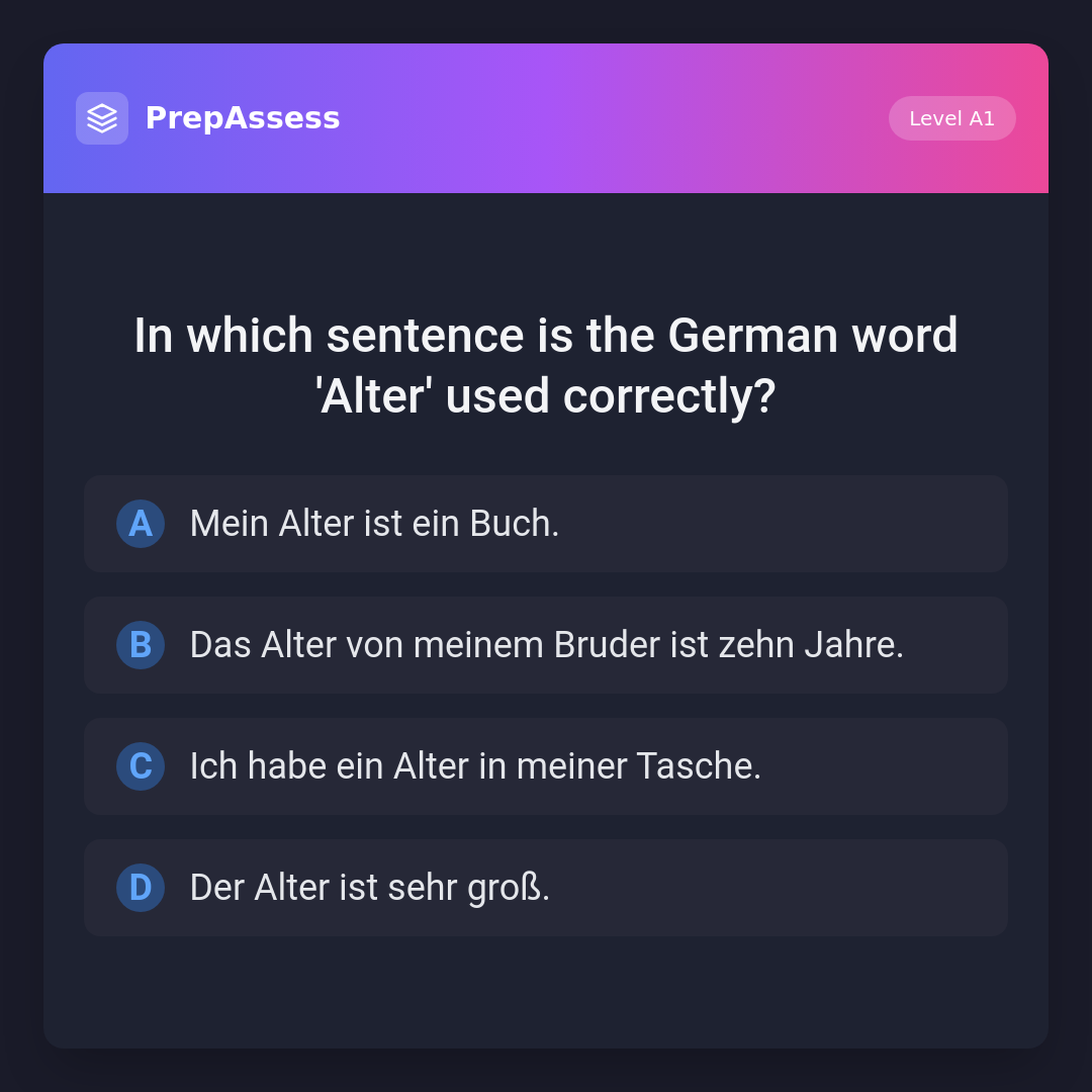 In which sentence is the German word 'Alter' used correctly?